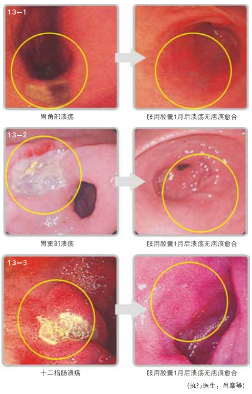 2. 胃腸潰瘍:這些疾病,目前醫(yī)學上采取的是疤痕修復潰瘍創(chuàng)面,從而導致復發(fā)不愈。采取本再生療法,新的胃腸粘膜可從潰瘍的創(chuàng)面上原位再生出來,取代了潰瘍創(chuàng)面,沒有疤痕,徹底治愈了胃腸潰瘍。(圖13 為胃鏡圖片)