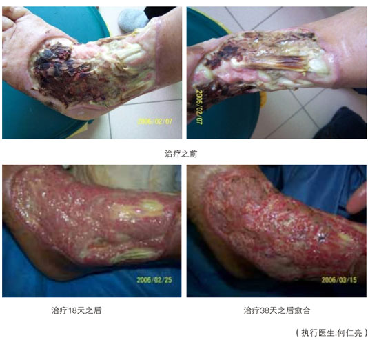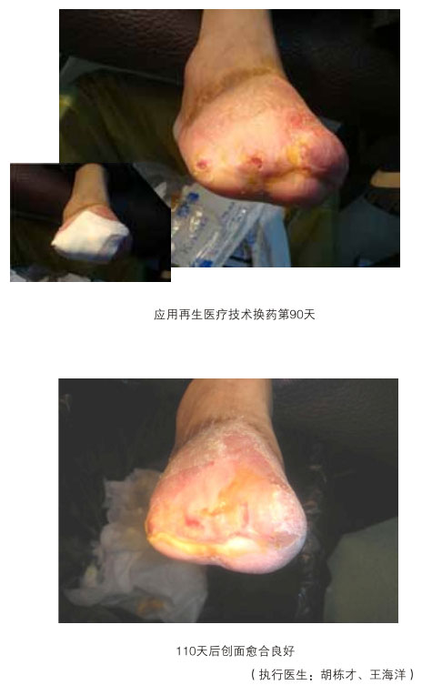糖尿病潰瘍是當(dāng)今世界還沒有有效治療方法的潰瘍,本研究再生療法已成功地對(duì)這一潰瘍像治療一般創(chuàng)面那樣,原位再生新的組織,使?jié)冊(cè)偕?,避免了截肢殘廢。動(dòng)脈閉塞性肢體遠(yuǎn)端壞死潰瘍更是世界醫(yī)學(xué)治療的難題,本研究仍可實(shí)現(xiàn)創(chuàng)面的再生復(fù)原愈合。