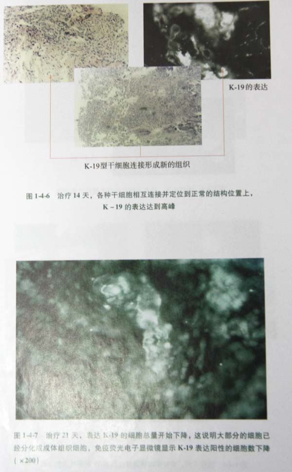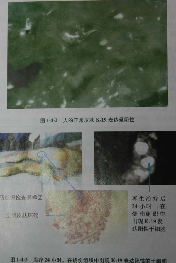原位再生皮膚技術的實際運用并不復雜,只要及時按操作規(guī)程在燒傷創(chuàng)面上外涂美寶濕潤燒傷膏,所治療的創(chuàng)面必然會形成生理性的濕潤環(huán)境,激活創(chuàng)面深層的潛能再生細胞,使其轉化成具有分化為三個胚層功能的干細胞即角蛋白19型干細胞,并在創(chuàng)面原部位啟動皮膚的胚胎發(fā)育過程和胚胎式組合,最終增殖、分化為正常皮膚組織結構,達到再生皮膚的臨床治療效果。