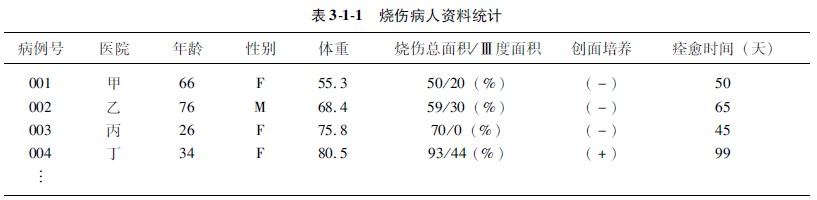 表311說明,表頭項目為變量,表中數(shù)據(jù)為資料,系變量的觀察值構(gòu)成了資料或數(shù)據(jù)??梢赃@么理解,總體就是我們要研究的某事物的總體(全部),構(gòu)成這個總體的每個個體稱為變量,如不同深度的燒傷創(chuàng)面就是其中的變量之一,因為病人的燒傷面積、患病年齡及性別不會完全相同,況且樣本是從總體中抽取的。所以從總體中抽取的這些可變因素僅是總體中的某一部分,只有把這些數(shù)據(jù)予以統(tǒng)計,方可得出能夠代表總體的結(jié)果。