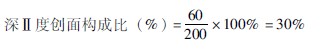 答:深Ⅱ度創(chuàng)面的構(gòu)成比為30%(其他創(chuàng)面構(gòu)成比計(jì)算方法與此相同,淺Ⅱ度創(chuàng)面構(gòu)成比為40%,Ⅲ度為305,總和為100%)。