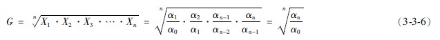 公式中G為平均發(fā)展速度;α0為基期水平;ɑ1 、ɑ2…為代表各期水平;ɑn為末期水平;n為環(huán)比發(fā)展速度的項(xiàng)數(shù),用對(duì)數(shù)計(jì)算。計(jì)算公式為: