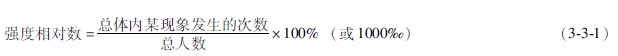 強(qiáng)度相對(duì)數(shù)又稱率的指標(biāo)或強(qiáng)度指標(biāo),是內(nèi)容不同而有聯(lián)系的兩個(gè)總量指標(biāo)的比。它表明疾病或某現(xiàn)象在一定范圍內(nèi)出現(xiàn)的次數(shù)或普遍程度,通常以100或1 000或10萬(wàn)為基數(shù)表示。