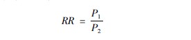 RR通常用于前瞻性研究。公式中的P1和P2分別表示同一事件在兩種不同情況下的發(fā)生率。一般用P1表示暴露在危險(xiǎn)因素下某事件的發(fā)生率;P2表示未暴露在危險(xiǎn)因素下某事件的發(fā)生率,兩者之比值具有倍數(shù)關(guān)系。事件指的是諸如患病、死亡、感染、發(fā)病等。