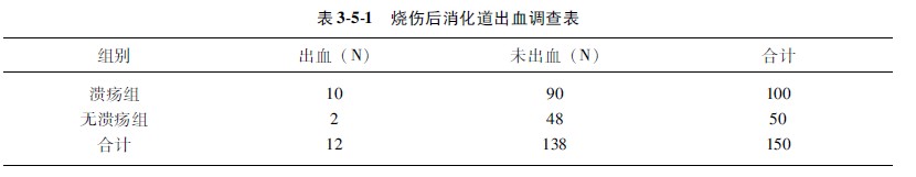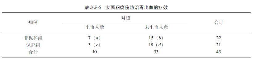 示例354某醫(yī)生研究大面積燒傷采用“胃腸黏膜保護(hù)劑”預(yù)防胃出血的作用,資料匯于表356中。問大面積燒傷病人不用“胃腸黏膜保護(hù)劑”進(jìn)行預(yù)防治療,是否是大面積燒傷病人發(fā)生胃出血的危險(xiǎn)因素?