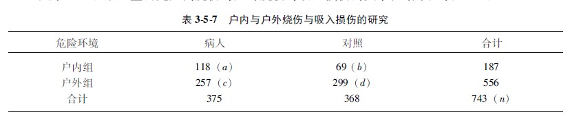 示例355:某醫(yī)生研究戶內(nèi)燒傷與戶外燒傷與吸入損傷的關(guān)系,結(jié)果見表357:
