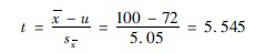 示例373已知正常成年人的脈搏平均數(shù)為72次/分,現(xiàn)某醫(yī)生測得10例大面積燒傷患者早期的脈搏平均為100次/分,標(biāo)準(zhǔn)差為1597次/分,問大面積成年燒傷患者早期的平均脈搏與正常成人脈搏均數(shù)有無顯著性差異?