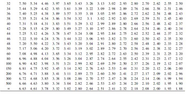 5結(jié)果判斷:本例自由度n1為3,n2為24,查F表:F005=301,F(xiàn)001=472,本例F=356,大于F005=301,但小于F001=472,即005>P>001。