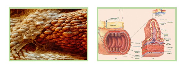 上右圖是腸粘膜絨毛的結(jié)構(gòu)示意圖,粘膜是由每一個絨毛器官(鋸齒狀的凸起)連接組成的,每一個絨毛獨立地行使吸收營養(yǎng)物質(zhì)的功能。