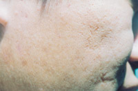 8. 淺Ⅲ度創(chuàng)面(右面部)自行愈合后3年,皮膚結(jié)構(gòu)基本正常,毛發(fā)生長(zhǎng),汗腺分泌