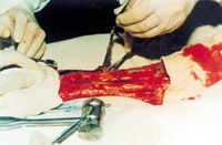 5-5-4 用骨鉆在骨面按間隔1cm鉆孔,鉆孔深度達髓質(zhì),有微出血