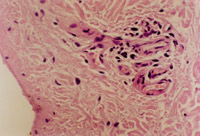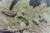 5-3-8 同上,真皮層小血管周圍網狀纖維呈黑色染色  HE×40