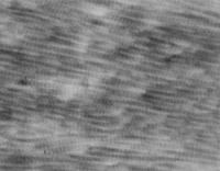 經MEBT/MEBO治療20天,電鏡觀察到基底細胞層與纖維母細胞之間的半橋粒連接,同時可見纖維母細胞內粗面內質網結構和線粒體增生活躍(圖5-3-19~5-3-21)。 MEBT/MEBO治療30天后,上皮組織再生修復,已基本完成,創(chuàng)面組織切片顯示膠原纖維成熟,排列整齊(圖5-3-22),直徑為0.1~0.5祄,并可見明暗相間周期性橫紋(64nm),未見到膠原纖維扭曲和呈旋渦、菜花等病理形態(tài)。