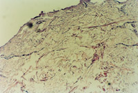 3-23 對(duì)其“皮點(diǎn)”進(jìn)行組織學(xué)檢查,該組織為從皮下組織中再生出的微血管、膠原組織、表皮細(xì)胞組織組成的再生皮膚組織團(tuán)