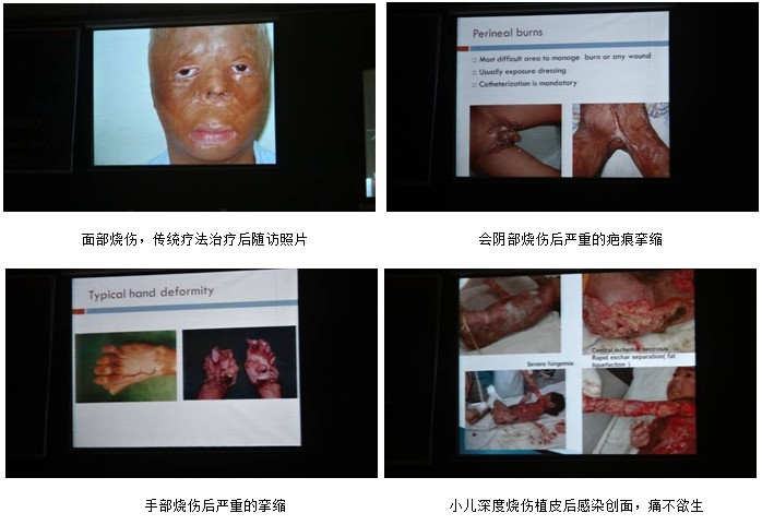 1月25日上午8點(diǎn)30分,會(huì)議正式開(kāi)幕。第一天,印度燒傷學(xué)會(huì)安排了全天的印度國(guó)內(nèi)繼續(xù)教育(CME)項(xiàng)目培訓(xùn),上午是口頭演講,下午是視頻手術(shù)演示,18位來(lái)自印度各大燒傷中心的主任或者學(xué)術(shù)帶頭人就燒傷中使用傳統(tǒng)外科技術(shù)方法在創(chuàng)面及系統(tǒng)治療中進(jìn)行了介紹。面對(duì)印度燒傷界專家在講臺(tái)上展示他們“成功”的案例時(shí),我們心中卻百感交集:本不富裕的印度人民和政府卻要為傳統(tǒng)外科技術(shù)治療燒傷過(guò)程中各種手術(shù)及手術(shù)后遺癥治療時(shí)高昂的費(fèi)用買(mǎi)單,同時(shí)燒傷病人還不得不承受創(chuàng)面恢復(fù)及身體康復(fù)過(guò)程中的痛苦;面對(duì)醫(yī)療資源的匱乏,甚至在燒傷止疼上,連最起碼地為病人減少疼痛的概念,還需要培訓(xùn)專家反復(fù)呼吁參會(huì)印度醫(yī)生引起注意;一張張面目全非的臉,一幅幅嚴(yán)重?cái)伩s瘢痕的照片,一幀幀血肉模糊的影像讓我們更加堅(jiān)信高性價(jià)比的再生醫(yī)療技術(shù)非常適合印度國(guó)情,再生醫(yī)療技術(shù)在印度全面地發(fā)展指日可待。