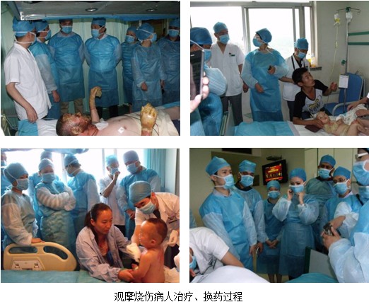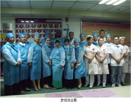 6月19日上午9點(diǎn),15位醫(yī)生被分成兩組,分別由舒葉主任和張美艷帶領(lǐng)參觀延安大學(xué)附屬醫(yī)院燒傷整形科病房。科室的李主任和楊主任對(duì)來訪客人分別進(jìn)行引導(dǎo)和講解,學(xué)習(xí)了大面積燒傷的治療,規(guī)范化的換藥,暴露療法,半暴露,及包扎療法的應(yīng)用,微粒皮種植技術(shù)的展示。參觀中,醫(yī)生們對(duì)換藥頻率,止疼藥及抗生素的使用,細(xì)菌培養(yǎng),療法適應(yīng)癥,見效的時(shí)間,疤痕防治,疤痕膏導(dǎo)入儀,按摩手法等都表示出了極大的興趣,兩位主任也詳細(xì)介紹了從急救,補(bǔ)液到防疤治療等局部到系統(tǒng)治療的具體事宜。幾位大面積燒傷患者的高質(zhì)量的創(chuàng)面愈合讓馬來醫(yī)生們感到欣慰和感嘆。應(yīng)醫(yī)生們的要求,院方安排了骨科病房的參觀,醫(yī)生們學(xué)習(xí)了再生技術(shù)在骨科領(lǐng)域的應(yīng)用,讓幾位骨科醫(yī)生興奮不已。