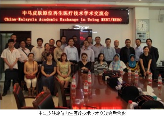 6月19日下午,馬來西亞醫(yī)生們與延安大學(xué)附屬醫(yī)院的醫(yī)務(wù)人員進(jìn)行了學(xué)術(shù)交流。交流安排了三場再生醫(yī)學(xué)演講,分別由延大附屬醫(yī)院燒傷的李主任和楊主任以及來自馬來西亞的創(chuàng)面治療專家諾亞醫(yī)生。他們互相介紹了自己所在的醫(yī)院,以及再生技術(shù)的應(yīng)用,彼此做了再生醫(yī)學(xué)應(yīng)用方面的報(bào)告。其中,延大醫(yī)院的李主任講了再生技術(shù)在大面積燒傷,外傷,潰瘍及其它創(chuàng)面中的應(yīng)用;楊主任講解了微粒皮種植技術(shù)的規(guī)范操作,適應(yīng)癥,臨床優(yōu)勢等等。馬來西亞的諾亞醫(yī)生講解了再生技術(shù)在糖尿病潰瘍,蛇咬傷,靜脈潰瘍,及褥瘡方面的應(yīng)用。雙方醫(yī)務(wù)人員對(duì)交流會(huì)感到非常滿意,受益頗深。在隨后的答疑階段,馬來西亞的醫(yī)生們爭相提問,詢問各種創(chuàng)面的治療,并咨詢了相關(guān)的基礎(chǔ)研究,并要求會(huì)后繼續(xù)深入交流!