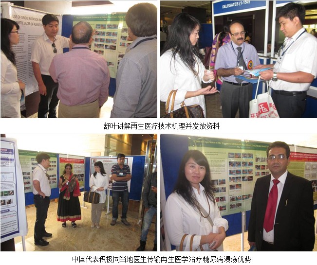 2013年9月6日-8日,第十二屆印度糖尿病協(xié)會年會在印度賈普爾萬豪酒店召開。中國中西醫(yī)結合學會對外辦公室主任舒葉,美寶印度分公司市場經(jīng)歷劉子萱及印度德里市場區(qū)域經(jīng)理參會。大會匯集了來自印度100多名各學科醫(yī)生,主要探討糖尿病及相關并發(fā)癥的預防及治療。其中糖尿病足的預防和治療是大會的重要內容,很多大會精心準備演講的課題都是關于糖尿病足的治療。舒葉準備的海報演講題目是“再生醫(yī)學技術治療糖尿病的經(jīng)驗”,其中囊括了數(shù)例中國中西醫(yī)結合學會燒傷專業(yè)委員會基地醫(yī)院的糖尿病足治療的成功案例。真實病例的展現(xiàn)吸引了大量當?shù)蒯t(yī)生前來駐足討論,當?shù)刂t(yī)生前來商討引進再生醫(yī)療技術可能性,此次會議的舉辦加快了再生醫(yī)療技術在印度多學科應用的發(fā)展。圖片報道如下: