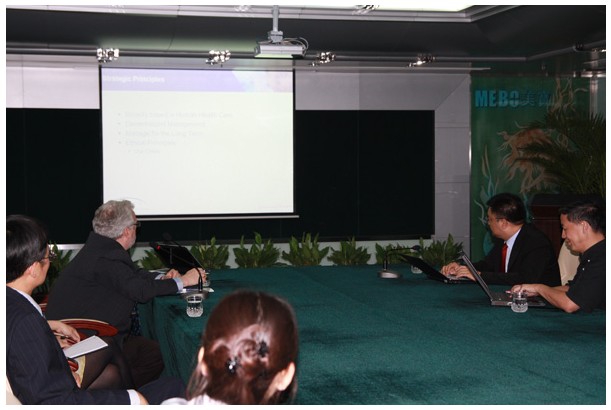 6日早晨,Dr. Joe Smith先生及強(qiáng)生的代表準(zhǔn)時(shí)到達(dá)美寶北京總部,他們受到了美寶國(guó)際集團(tuán)主席徐榮祥教授以及董事局成員的熱烈歡迎。