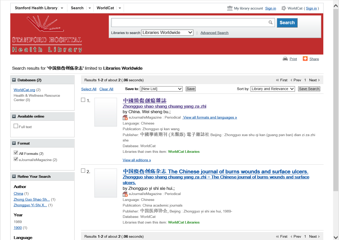 斯坦福大學(Stanford University)收錄中國燒傷創(chuàng)瘍雜志