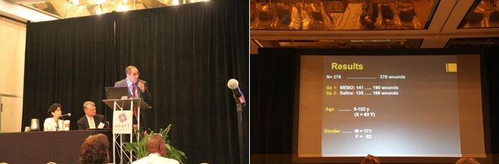 8月30日上午,MohamedSakr教授以“Assessmentof Regenerative Therapy (MEBT/MEBO) in Healing ofVariousOpen Wounds: A Multicenter Controlled Randomized Trial”為題發(fā)表了燒傷再生醫(yī)學(xué)在260余例燒傷、創(chuàng)傷、糖尿病足潰瘍領(lǐng)域應(yīng)用的研究報(bào)告,深深吸引了在座參會專家。