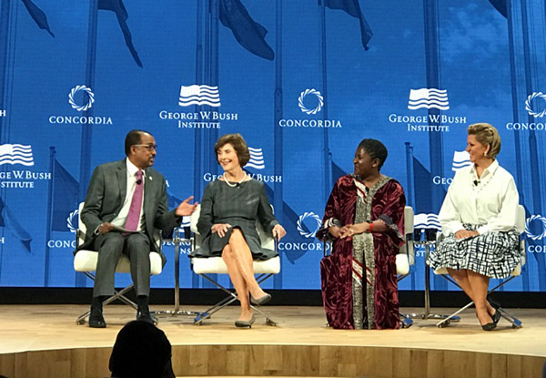 2017年9月18日,徐榮祥基金會總裁徐鵬應邀出席在紐約舉行的CONCORDIA 2017峰會。與會嘉賓包括英國前首相布萊爾、美國前第一夫人勞拉•布什、現(xiàn)任美國交通部長趙小蘭和商務部長羅斯等國際政要以及聯(lián)合國多個部門領導。對話嘉賓們就動員私人領域資源支持難民和移民、信息平等、全球第一夫人們的影響力和領導力、黨派偏見的影響、西半球的經(jīng)濟發(fā)展與繁榮、信息泛濫時代的政治策略、技術(shù)與勞動力的未來、合作產(chǎn)生影響力、美國交通領域的合作機會、利用技術(shù)藝術(shù)和文化解決全球挑戰(zhàn)、通過實現(xiàn)可持續(xù)發(fā)展目標構(gòu)筑安全與和平、人道主義、打破玻璃天花板、跨界合作、美國的環(huán)境政策、公司與政府應對能源變遷的規(guī)劃、美國的公私合作等眾多議題展開高峰對話和探討。