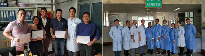 11月14日清晨,菲律賓專家一行便興致勃勃地前往燒傷與創(chuàng)面修復科病房觀摩再生醫(yī)療技術在燒傷、糖尿病足潰瘍、壓瘡等創(chuàng)面的規(guī)范化治療,并在科室醫(yī)生的指導下實際上手操作換藥流程。隨后,各醫(yī)療專家到會議室就再生醫(yī)療技術在慢性及難愈性創(chuàng)面的規(guī)范化應用再次進行了具體的學術交流及探討。就再生醫(yī)療技術在糖尿病足潰瘍、壓瘡創(chuàng)面、糖尿病足潰瘍及皮膚病的良好應用效果進行了交流,加深了對再生醫(yī)學的理解。還特別分享了再生醫(yī)療技術與微粒皮種植結(jié)合使用的病例等。菲律賓專家高興的表示,盡管他們已有多年的再生醫(yī)療技術使用經(jīng)驗,但仍然驚訝于再生醫(yī)療技術在多學科應用所取得的成就,并表示回國后將致力于再生醫(yī)學在菲律賓更廣泛的發(fā)展。最后,由陳錚教授向來訪的專家團隊頒發(fā)了培訓證書,本次來華交流活動圓滿結(jié)束。