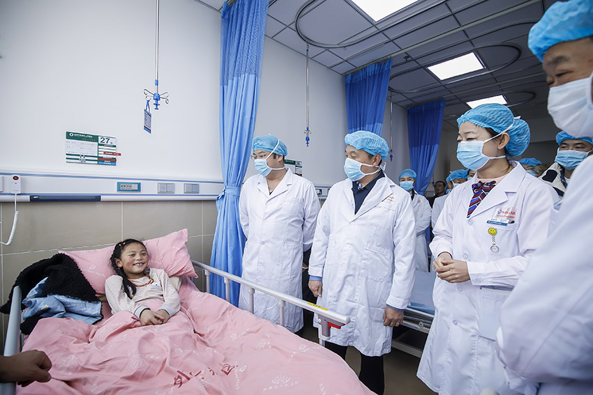 徐鵬一行還參觀(guān)了燒傷創(chuàng)瘍科、兒科等科室。一個(gè)因翻車(chē)壓傷造成跟骨外露并拒絕做手術(shù)的西藏小女孩,在燒傷創(chuàng)瘍?cè)偕t(yī)療技術(shù)的治療下,正在很好的復(fù)原中,不會(huì)講漢語(yǔ)的父親一直豎著大拇指,表達(dá)著對(duì)醫(yī)生的謝意,對(duì)技術(shù)的贊美。這一幕深深觸動(dòng)了現(xiàn)場(chǎng)的每一位來(lái)訪(fǎng)者,中國(guó)人民對(duì)外友好協(xié)會(huì)美大部副主任吉擁軍表達(dá)了自己特別的感動(dòng)之情,并表示再一次在現(xiàn)場(chǎng)切實(shí)感受到了“生命再生”項(xiàng)目的意義,感受到了源自中國(guó)的燒傷創(chuàng)瘍?cè)偕t(yī)療技術(shù)通過(guò)“生命再生”行動(dòng)走向世界的價(jià)值。