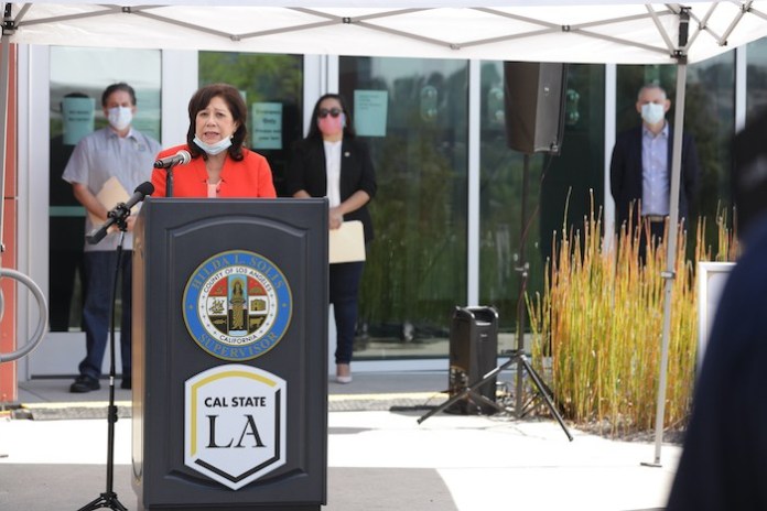 5月9日,一個(gè)新的新冠肺炎免費(fèi)檢測(cè)點(diǎn)在加州州立大學(xué)洛杉磯分校徐榮祥生物科學(xué)創(chuàng)新中心(Rongxiang Xu Bioscience Innovation Center)正式啟動(dòng),徐榮祥生物科學(xué)創(chuàng)新中心將在新冠肺炎大流行中發(fā)揮重要作用,為當(dāng)?shù)厣鐓^(qū)提供安全、準(zhǔn)確的COVID-19檢測(cè),幫助阻止病毒的傳播。該站點(diǎn)由洛杉磯州大與洛杉磯郡政府以及加州州長(zhǎng)辦公室合作設(shè)立。