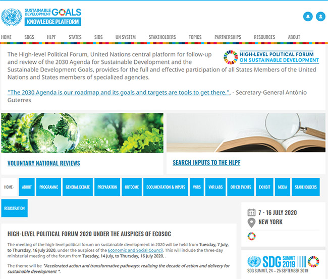 2020年7月7日至16日,一年一度的聯(lián)合國可持續(xù)發(fā)展高級別政治論壇(HLPF)舉行,來自聯(lián)合國所有成員國以及民間社會團體的代表首次以連線方式審查2030年前全球在實現(xiàn)17個可持續(xù)發(fā)展目標(biāo)上取得的進(jìn)展、面臨的挑戰(zhàn),并總結(jié)經(jīng)驗教訓(xùn),繼續(xù)推動聯(lián)合國系統(tǒng)的可持續(xù)發(fā)展議程。