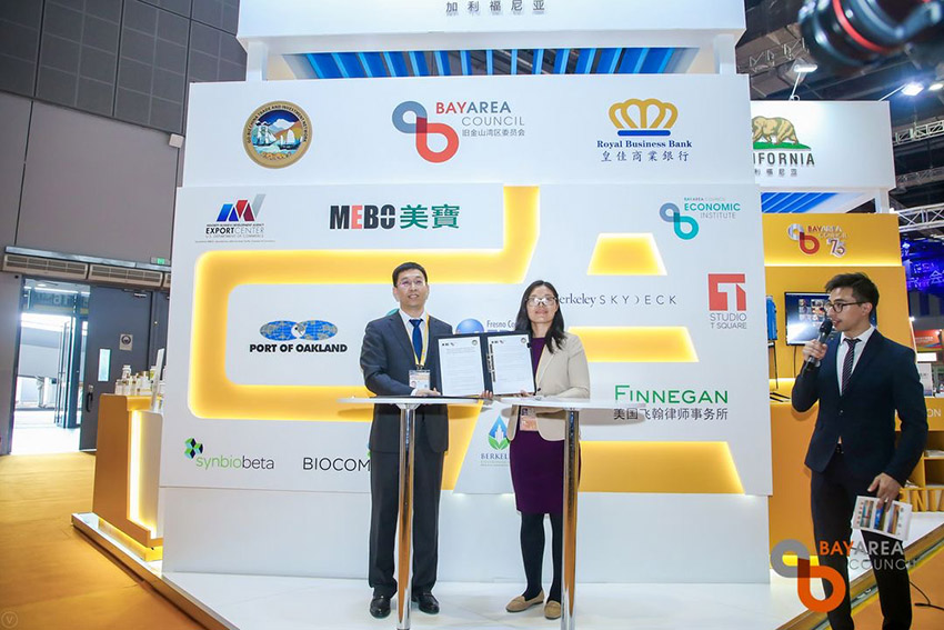 美寶集團(tuán)總裁楊智斌,副總裁劉鋼、商慶新,灣區(qū)委員會(huì)全球倡議副主席兼中國業(yè)務(wù)總監(jiān)鄒艷玲(Jennifer Zou)在加州館進(jìn)博會(huì)現(xiàn)場參加了此次儀式。