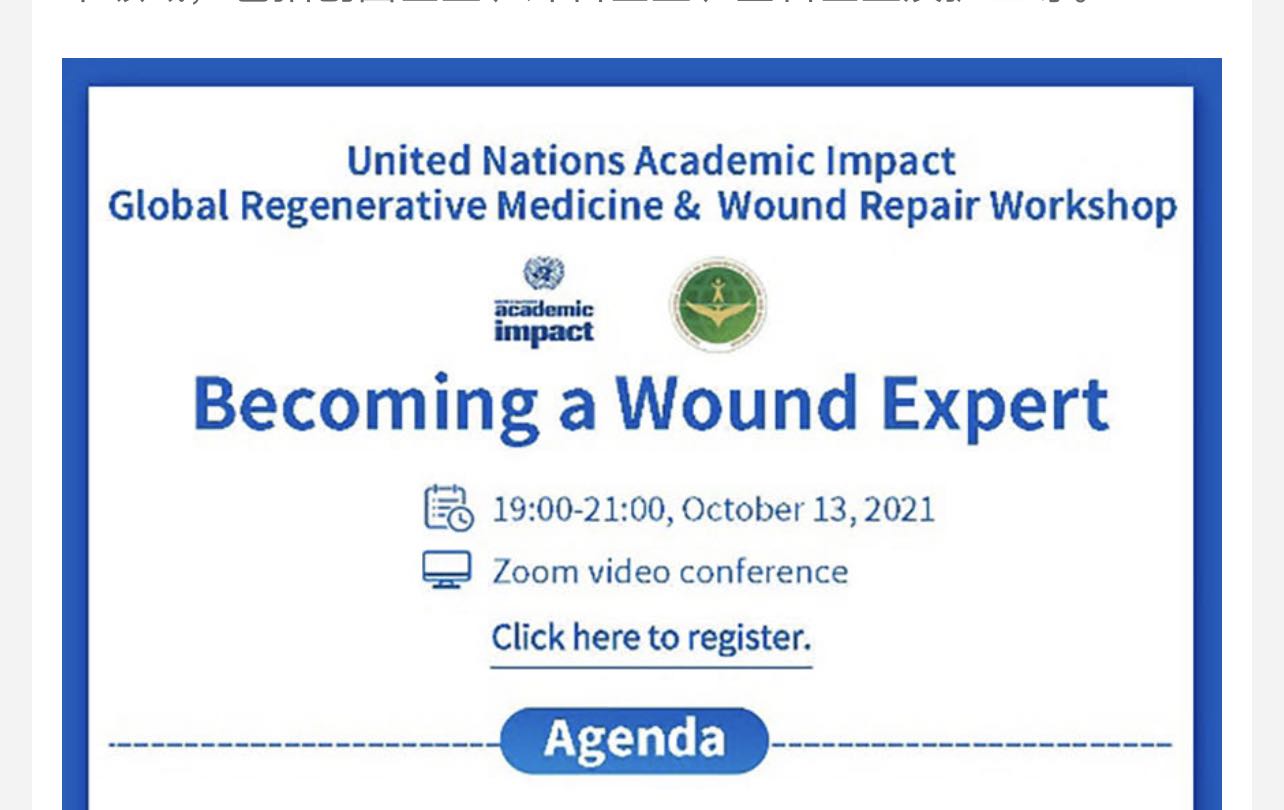 2021年10月14日,由國際再生醫(yī)學(xué)與創(chuàng)面修復(fù)學(xué)會主辦的聯(lián)合國學(xué)術(shù)影響力國際再生醫(yī)學(xué)線上培訓(xùn)活動順利舉行。