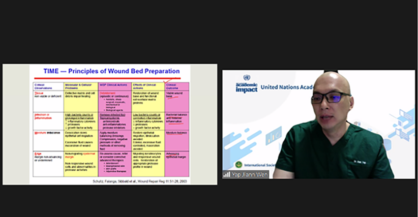 首位演講嘉賓是來自馬來西亞的Dr. Yap。Dr. Yap是馬來西亞創(chuàng)面醫(yī)師協(xié)會副主席、馬來西亞Queen Elizabeth醫(yī)院創(chuàng)面科主任。他的演講題目為《創(chuàng)面評估》,在演講中,他詳細(xì)地介紹了創(chuàng)面的主要評估指標(biāo)以及創(chuàng)面床的準(zhǔn)備等。