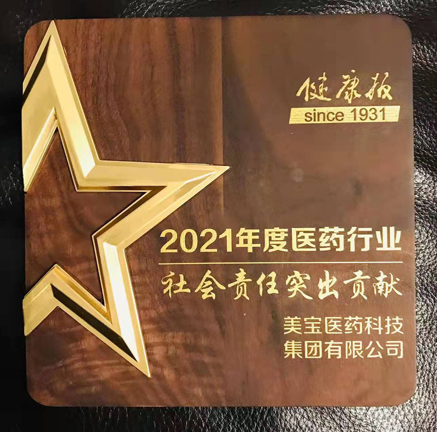 喜訊再傳:美寶集團榮獲“2021年度醫(yī)藥行業(yè)社會責任突出貢獻獎”