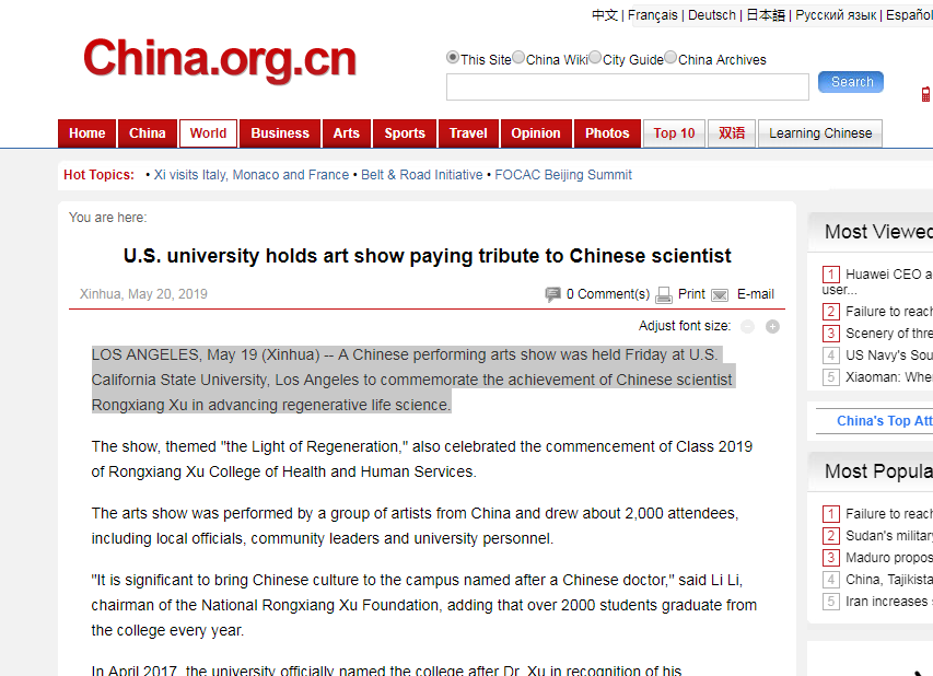 中國(guó)網(wǎng):U.S. university holds art show paying tribute to Chinese scientist