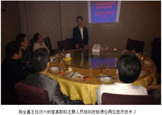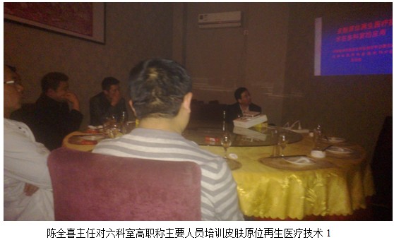 黃河三門峽醫(yī)院在三個月前已進(jìn)行過一次皮膚原位再生培訓(xùn)。通過三個月的臨床應(yīng)用,遇到了一些臨床棘手病人,特邀請陳全喜主任再次進(jìn)行皮膚原位再生醫(yī)療技術(shù)培訓(xùn)。下午3點(diǎn),在黃河迎賓大酒店舉辦了六科室主任、護(hù)士長的高職稱科主要人員學(xué)習(xí)培訓(xùn)班(產(chǎn)科、骨科一、骨科二、泌尿外科、心胸外科,普外科。)