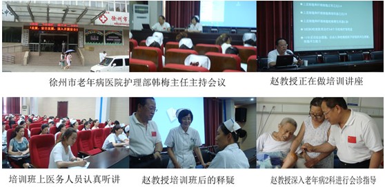 【2】7月19日下午趙教授在徐州市老年病醫(yī)院進(jìn)行全院護(hù)理人員開展使用再生復(fù)原技術(shù)治療老年病合并皮膚潰瘍的培訓(xùn)。培訓(xùn)期間與護(hù)理人員進(jìn)行互動(dòng)答疑環(huán)節(jié)。會(huì)后趙教授深入老年病2科進(jìn)行會(huì)診指導(dǎo)。