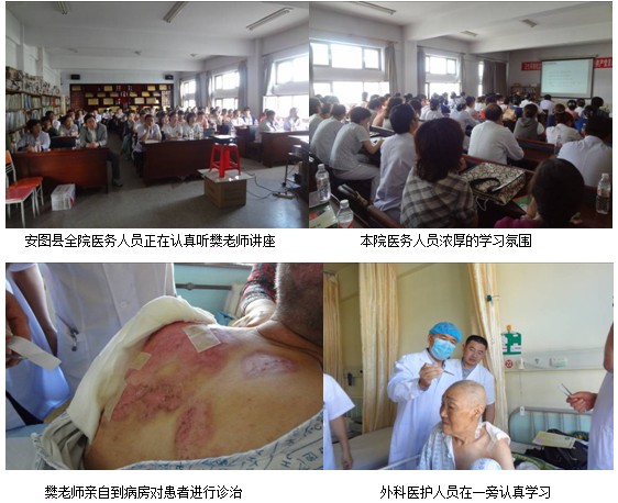 安圖縣醫(yī)院是一所集醫(yī)療、教學(xué)、康復(fù)為一體安圖縣境內(nèi)最大的綜合性二級(jí)甲等醫(yī)院,全院206名醫(yī)護(hù)人員,醫(yī)院設(shè)有15個(gè)臨床科室,7個(gè)醫(yī)技科室和專(zhuān)家門(mén)診,設(shè)有200多張病床。2012年7月4日,安圖縣醫(yī)院為了更深入的掌握“皮膚原位再生復(fù)原技術(shù)”規(guī)范應(yīng)用和最新進(jìn)展,特邀中國(guó)中西醫(yī)結(jié)合學(xué)會(huì)燒傷專(zhuān)業(yè)委員會(huì)委員樊兆宗教授進(jìn)行專(zhuān)題學(xué)術(shù)報(bào)告。