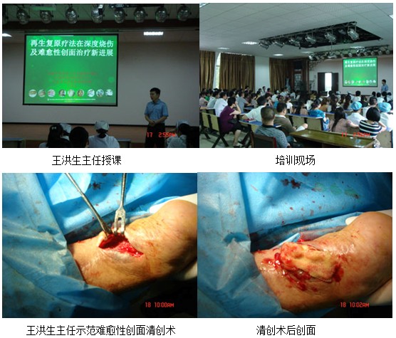 當(dāng)日下午三點,由該院外科蘇主任致歡迎辭并宣布培訓(xùn)開始,由王洪生主任以“再生復(fù)原療法在深度燒傷及難愈合創(chuàng)面治療新進(jìn)展”為題做了專題講座,來自該院各科室100余名醫(yī)護(hù)人員參加了此次培訓(xùn),王洪生主任在介紹我國著名生命科學(xué)家、醫(yī)學(xué)家徐榮祥教授近年來在人體再生復(fù)原科學(xué)領(lǐng)域取得的重大臨床與實驗研究成果后,從再生醫(yī)學(xué)的理論到該技術(shù)治療燒傷、褥瘡、糖尿病足、各種難愈合創(chuàng)面、疤痕防治及各科室運用的臨床治療規(guī)范做了詳細(xì)的講解,參會人員均被再生醫(yī)學(xué)神奇的治療效果所震驚。