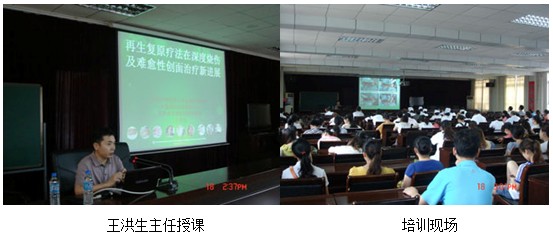 下午三點(diǎn),由該院外科龍主任致歡迎辭并宣布培訓(xùn)開(kāi)始,由王洪生主任以“再生復(fù)原療法在深度燒傷及難愈合創(chuàng)面治療新進(jìn)展”為題做了專題講座,來(lái)自該院各科室80余名醫(yī)護(hù)人員參加了此次培訓(xùn),王洪生主任在介紹我國(guó)著名生命科學(xué)家、醫(yī)學(xué)家徐榮祥教授近年來(lái)在人體再生復(fù)原科學(xué)領(lǐng)域取得的重大臨床與實(shí)驗(yàn)研究成果后,從再生醫(yī)學(xué)的理論到該技術(shù)治療燒傷、褥瘡、糖尿病足、各種難愈合創(chuàng)面、疤痕防治及各科室運(yùn)用的臨床治療規(guī)范做了詳細(xì)的講解,參會(huì)人員均被再生醫(yī)學(xué)神奇的治療效果所震驚。