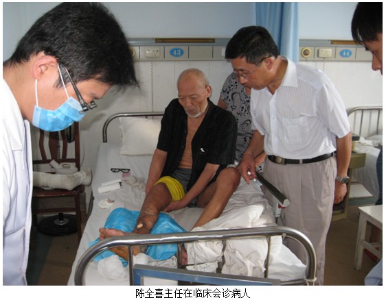 2012年8月9號(hào)中國(guó)中西醫(yī)結(jié)合學(xué)會(huì)燒傷專(zhuān)業(yè)委員會(huì)委員、北京美寶燒傷創(chuàng)瘍研究所臨床部專(zhuān)家陳全喜第二次應(yīng)河南省新鄉(xiāng)醫(yī)學(xué)院第三附屬醫(yī)院骨科李主任和孫大夫的邀請(qǐng),會(huì)診一例下肢骨外露的患者。