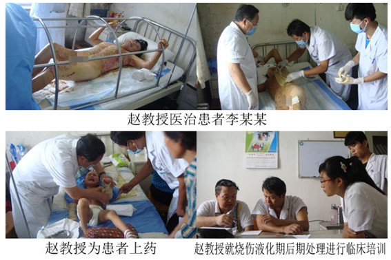北京燒傷創(chuàng)瘍研究所趙瑞慶教授第一時間趕到了該醫(yī)院,在院領(lǐng)導(dǎo)的協(xié)調(diào)下,積極參與了搶救工作。截止到8月20日,使用再生復(fù)原技術(shù)治療兩例大面積燒傷病人,安全度過了休克期、感染期,平穩(wěn)過渡到創(chuàng)面修復(fù)階段。趙瑞慶教授利用星期天早會間隙時間,就如何正確認(rèn)識創(chuàng)面液化物,用創(chuàng)瘍貼保護(hù)創(chuàng)面軟薄膜、如何減少使用抗生素用量進(jìn)行了專題培訓(xùn)。趙教授在菏澤創(chuàng)傷醫(yī)院搶救病人期間和該院鄭連榮、楊鳳民院長就北京燒傷創(chuàng)瘍研究所與菏澤創(chuàng)傷醫(yī)院持久長期技術(shù)合作達(dá)成了一致意見。