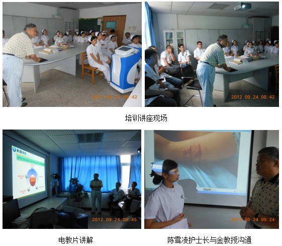 早上八點三十分,金教授在三峽大學仁和醫(yī)院手外整形科,通過電教片闡述了皮膚原位再生復原技術在防疤、治疤、美容方面的適應癥,治療理念和祛疤機理。結合臨床治療病例圖片,金教授還重點講解了再生產(chǎn)品美寶疤痕軟膏結合美寶疤痕導入儀的使用方法和注意事項,并操作了導入儀器。得知金教授再次在該科室講座,科室戴黎明主任特意把周一早上學習時間安排出來,陳雪凌護士長也拍取了一位學生的瘢痕圖片,向金教授虛心溝通治療方案。講座結束后,關于日常瘢痕治療和儀器使用細節(jié)問題護士們紛紛同教授進行了課后互動。