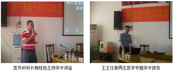 會(huì)后,該院副院長(zhǎng)兼骨科學(xué)科帶頭人魏海林和醫(yī)務(wù)科科長(zhǎng)梅桂色與王主任的交流中講到,過(guò)去只知道再生療法治療燒傷,今天聽(tīng)了王主任的講座才知道再生醫(yī)療技術(shù)還在難愈性創(chuàng)面潰瘍創(chuàng)面中的獨(dú)特療效,這次臨床學(xué)術(shù)講座非常必要,希望王主任有空多到該院進(jìn)行再生技術(shù)的指導(dǎo),讓再生技術(shù)更好的掌握再生技術(shù)服務(wù)于邕寧區(qū)人民。