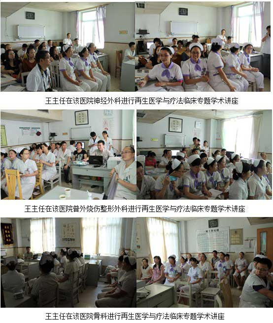2012年9月13—14日,應(yīng)該院多個科室的邀請,中國中西醫(yī)結(jié)合學(xué)會燒傷專業(yè)委員會常務(wù)兼秘書、《中國燒傷創(chuàng)瘍雜志》副總編輯、北京美寶燒傷創(chuàng)瘍研究所副所長、第二臨床研究部主任王洪生研究員先后應(yīng)邀到該醫(yī)院腦外神外科,普外燒傷整形外科,骨科作“再生醫(yī)學(xué)與療法在深度燒傷及難愈性創(chuàng)面治療新進展”臨床學(xué)術(shù)交流,在該醫(yī)院交流期間,該醫(yī)院感染科,五官科,腫瘤科等多個科室相關(guān)人員也聆聽了王主任的再生醫(yī)學(xué)與療法專題學(xué)術(shù)講座。