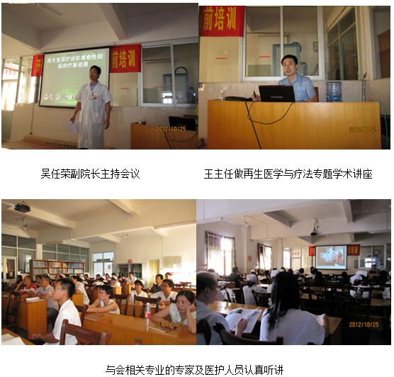 為了更好、更規(guī)范地將再生技術(shù)應(yīng)用到臨床造?;颊撸龠M再生技術(shù)的多科室應(yīng)用,2012年10月25日下午,   該院邀請了中國中西醫(yī)結(jié)合學(xué)會燒傷專業(yè)委員會常委兼秘書、《中國燒傷創(chuàng)瘍雜志》副總編輯、北京美寶燒傷創(chuàng)瘍研究所副所長、臨床研究部主任王洪生研究員做學(xué)術(shù)講座。王主任以“再生復(fù)原療法在難愈性創(chuàng)瘍創(chuàng)面治療新進展”為題進行了專題學(xué)術(shù)講座。會議由該院業(yè)務(wù)院長吳任榮主持,各相關(guān)臨床科室燒傷科、外科、骨科、手外科,婦產(chǎn)科等醫(yī)護人員50余人參會學(xué)習(xí)。在學(xué)術(shù)講座中,王主任結(jié)合臨床圖片對各種難愈性創(chuàng)傷、潰瘍創(chuàng)面的規(guī)范處理方法與技巧做了詳細(xì)講解。講座結(jié)束后王主任應(yīng)邀于當(dāng)日晚餐時與該醫(yī)院院領(lǐng)導(dǎo)及外科主任等做了進一步交流,王主任對他們提出的在臨床中常遇到的一些治療技術(shù)難題進行了詳細(xì)解答。