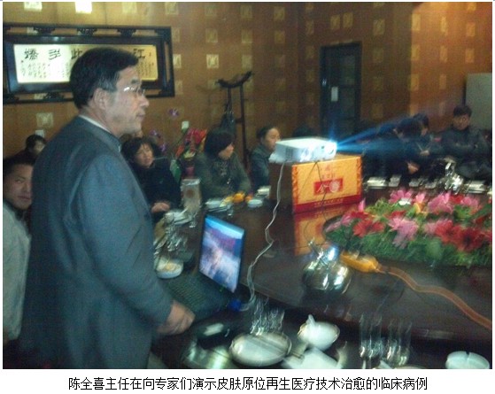 2012年11月4日,中國中西醫(yī)結(jié)合學(xué)會(huì)燒傷專業(yè)委員會(huì)、北京美寶燒傷創(chuàng)瘍研究所臨床部專家陳全喜和河南技術(shù)推廣責(zé)任人賀杰鋒應(yīng)邀來到了商丘市寧陵縣。下午5點(diǎn)對(duì)寧陵縣人民醫(yī)院外科,中醫(yī)院外科、婦產(chǎn)科,婦幼保健院婦產(chǎn)科二十一位科主任護(hù)士長進(jìn)行皮膚原位再生醫(yī)療技術(shù)的培訓(xùn)。