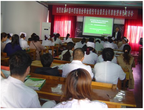 2012年10月18日宣城市再生醫(yī)療技術(shù)培訓(xùn)班如期舉辦。學(xué)術(shù)活動由安徽技術(shù)推廣辦事處和宣城市中醫(yī)院聯(lián)合舉辦。宣城市中醫(yī)院是經(jīng)國家批準(zhǔn)的二級非營利性醫(yī)療機(jī)構(gòu),應(yīng)用再生醫(yī)療技術(shù)已經(jīng)二十余年。會議由該院張書記主持,張書記是應(yīng)用MEBT/MEBO多年,并積累了豐富臨床經(jīng)驗的專家。來自大外科主任兼業(yè)務(wù)院長唐院長、骨科裴主任、婦產(chǎn)科楊主任、糖尿病科楊主任、內(nèi)科護(hù)士長等相關(guān)專業(yè)醫(yī)護(hù)人員近100人聆聽了肖摩教授“中西醫(yī)結(jié)合創(chuàng)面治療新進(jìn)展”學(xué)術(shù)報告。大量真實的臨床病例圖片和圖像,將再生復(fù)原療法在難愈性創(chuàng)瘍創(chuàng)面、潰瘍創(chuàng)面、糖尿病足、褥瘡創(chuàng)面的規(guī)范化處理方法與技巧、注意事項等進(jìn)行了細(xì)致地講解,并對婦產(chǎn)科和肛腸科遇到的棘手創(chuàng)面進(jìn)行了講解。會議結(jié)束后肖摩教授還應(yīng)骨科邀請,到病房會診癌癥潰瘍的患者。