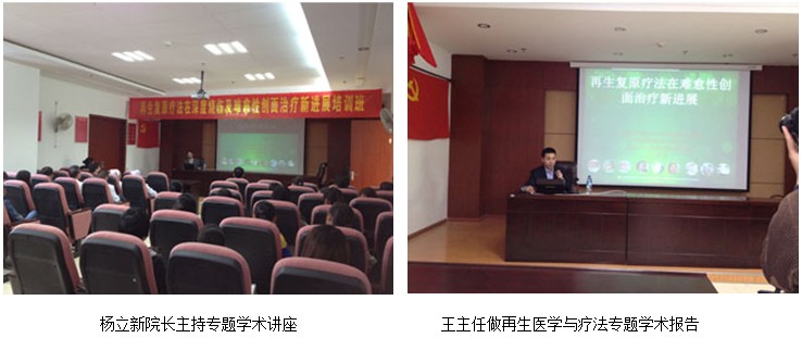 2012年11月16日下午應(yīng)該院楊立新院長的邀請, 中國中西醫(yī)結(jié)合學會燒傷專業(yè)委員會常委兼秘書、《中國燒傷創(chuàng)瘍雜志》副總編輯、北京美寶燒傷創(chuàng)瘍研究所副所長、臨床研究部主任王洪生研究員來到該院,對該院醫(yī)護人員進行再生復原療法在深度燒傷及難愈性創(chuàng)面和各種潰瘍治療新進展的規(guī)范性培訓及學術(shù)交流。王主任結(jié)合大量真實的臨床病例圖片,就再生復原療法在難愈性創(chuàng)瘍創(chuàng)面治療上的一種新方法,對不同深度的燒傷創(chuàng)面及各類難愈性創(chuàng)傷、潰瘍創(chuàng)面的規(guī)范化處理方法與技巧、注意事項等進行了細致的講解,強調(diào)創(chuàng)面處理要大膽清創(chuàng)、減壓、去除壞死組織,并保持創(chuàng)面生理的濕潤環(huán)境,實現(xiàn)創(chuàng)面的再生復原。會后外科的醫(yī)生就高壓電燒傷顱骨開窗等系列問題請教了王主任,并一一作答。