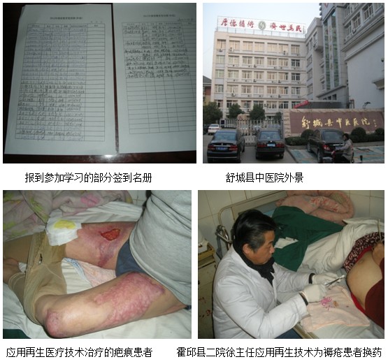 2012年12月8日至15日,中國中西醫(yī)結(jié)合學(xué)會(huì)燒傷專業(yè)委員會(huì)常務(wù)委員、北京美寶燒傷創(chuàng)瘍研究所臨床部杜福勤主任應(yīng)安徽省區(qū)辦事處張朝軍主任、馬勁松技術(shù)推廣專員的邀請于2012年8日至12日走訪了舒城縣中醫(yī)院、霍邱縣第二人民醫(yī)院、霍邱縣中醫(yī)院、阜陽市人民醫(yī)院燒傷科、阜陽市人民醫(yī)院骨科并舉辦了科室講座。
